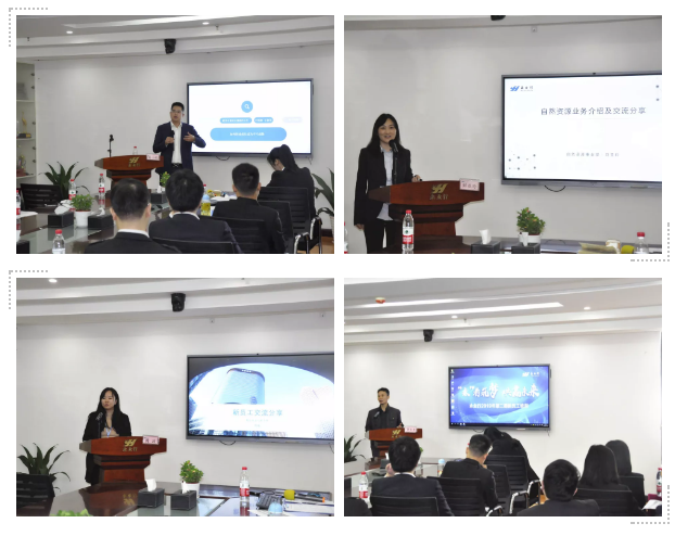 鄂西区总经理雷小明和自然资源事业部技术总监刘亚玲分别就所在分部、部门的业务情况做了详细介绍,同时针对新员工的成长给出了非常中肯的意见。优秀员工代表不动产事业群周玫和自然资源事业部黄长勇与新员工分享了各自在永业行多年的工作和成长感悟,并鼓励大家要勇于尝试、不断挑战自我。