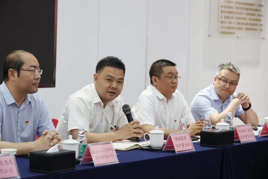 绿地集团华中事业部党委办公室主任张亚鹰表示将围绕武汉长江主轴黄金右岸,通过党建打造红色、金色、绿色一线牵,建设“两新”组织宣传教育的红色阵地。